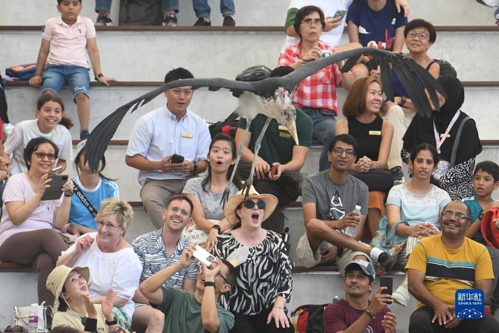 5月8日,觀眾在新加坡飛禽公園開(kāi)放當(dāng)天來(lái)到園內(nèi)欣賞飛禽表演。