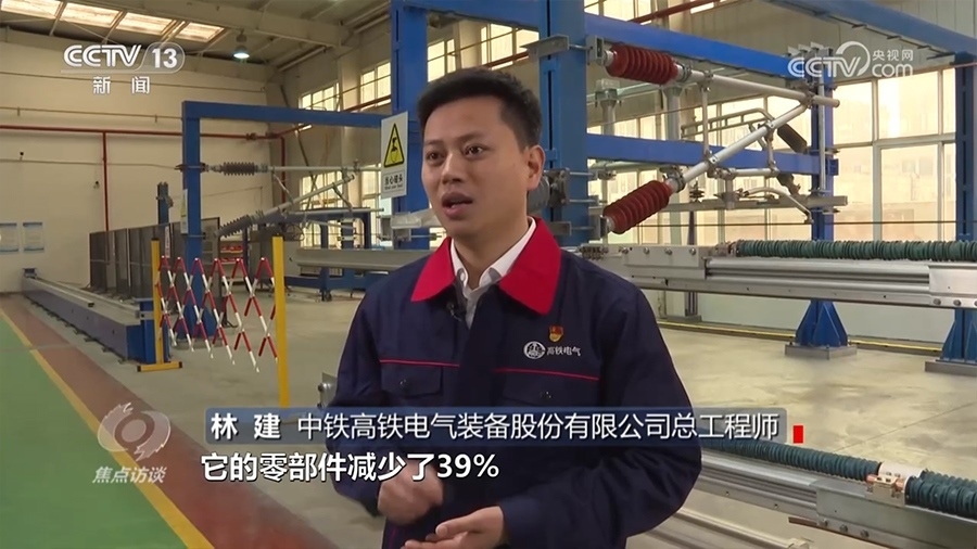 中鐵高鐵電氣裝備股份有限公司總工程師林建:“簡(jiǎn)統(tǒng)化腕臂裝置相對(duì)于傳統(tǒng)的鋁合金三角腕臂裝置來說,它的零部件減少了39%,在運(yùn)營(yíng)過程中,在同等滿足系統(tǒng)使用要求情況下,零部件越少,故障率越小,安全可靠性就會(huì)更高?!?/p>