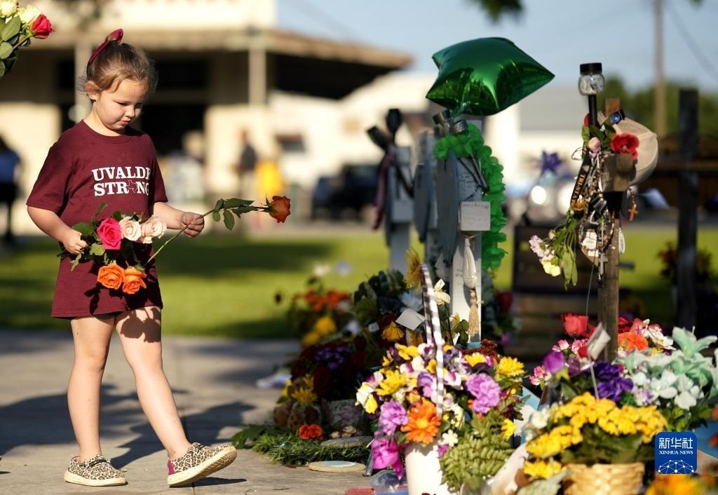 當(dāng)日是美國尤瓦爾迪大規(guī)模校園槍擊事件一周年。2022年5月24日,19名學(xué)生和2名教師在尤瓦爾迪市羅布小學(xué)槍擊事件中遇難。