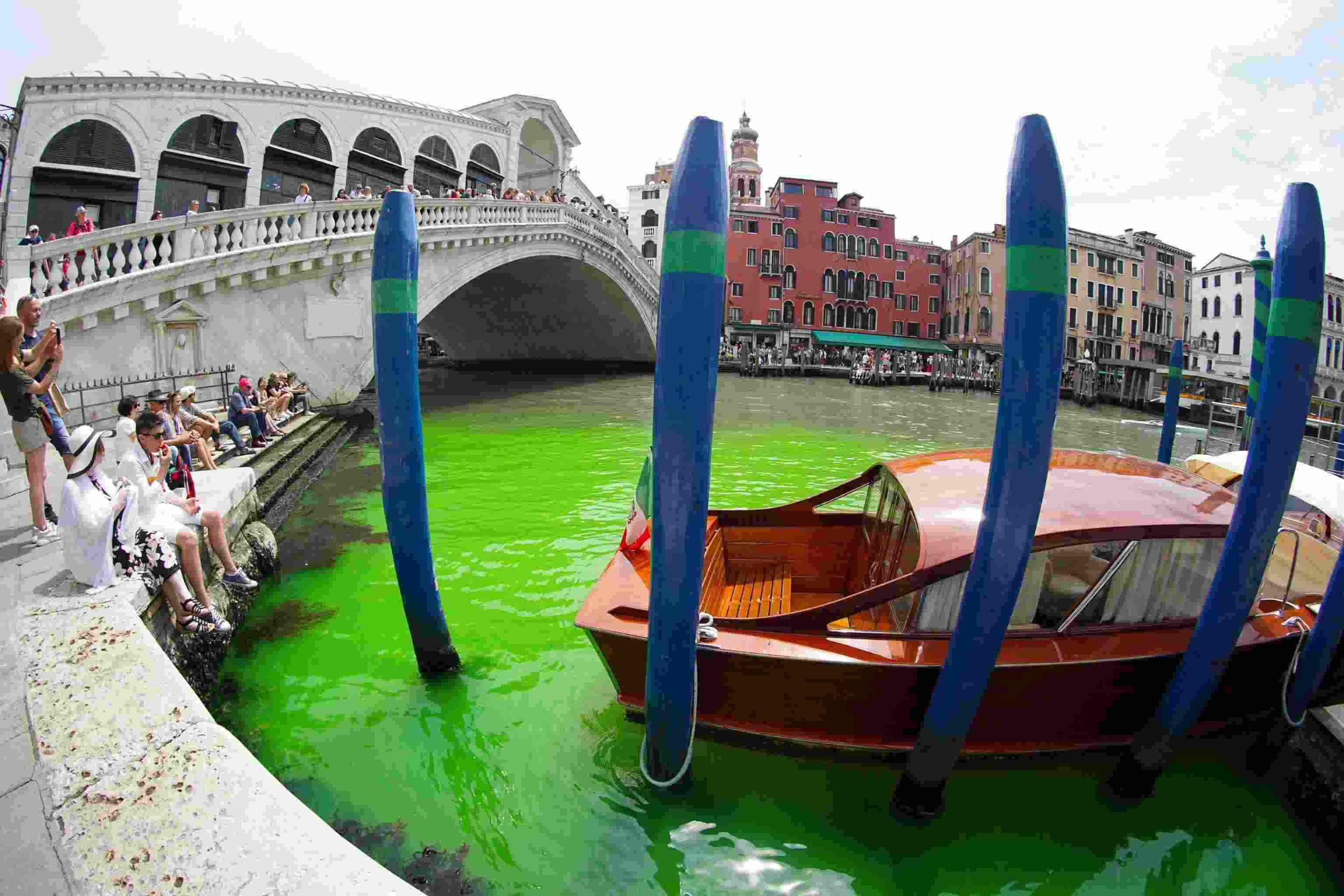意大利威尼斯主河道部分水體變熒光綠色