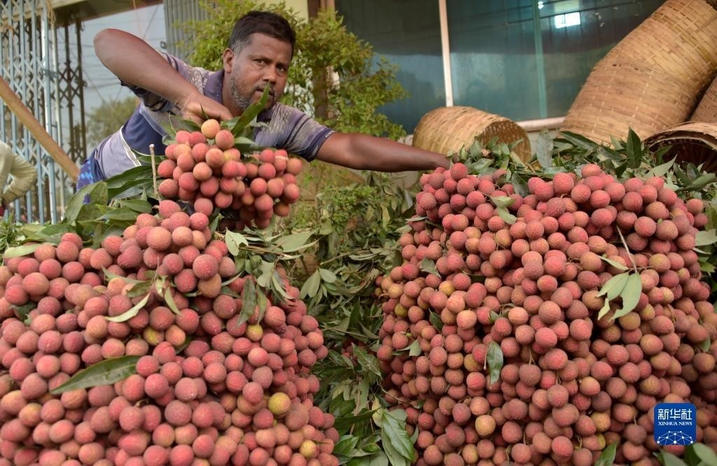 這是6月4日在孟加拉國迪納杰布爾市場中拍攝的待售的荔枝。新華社發(fā)