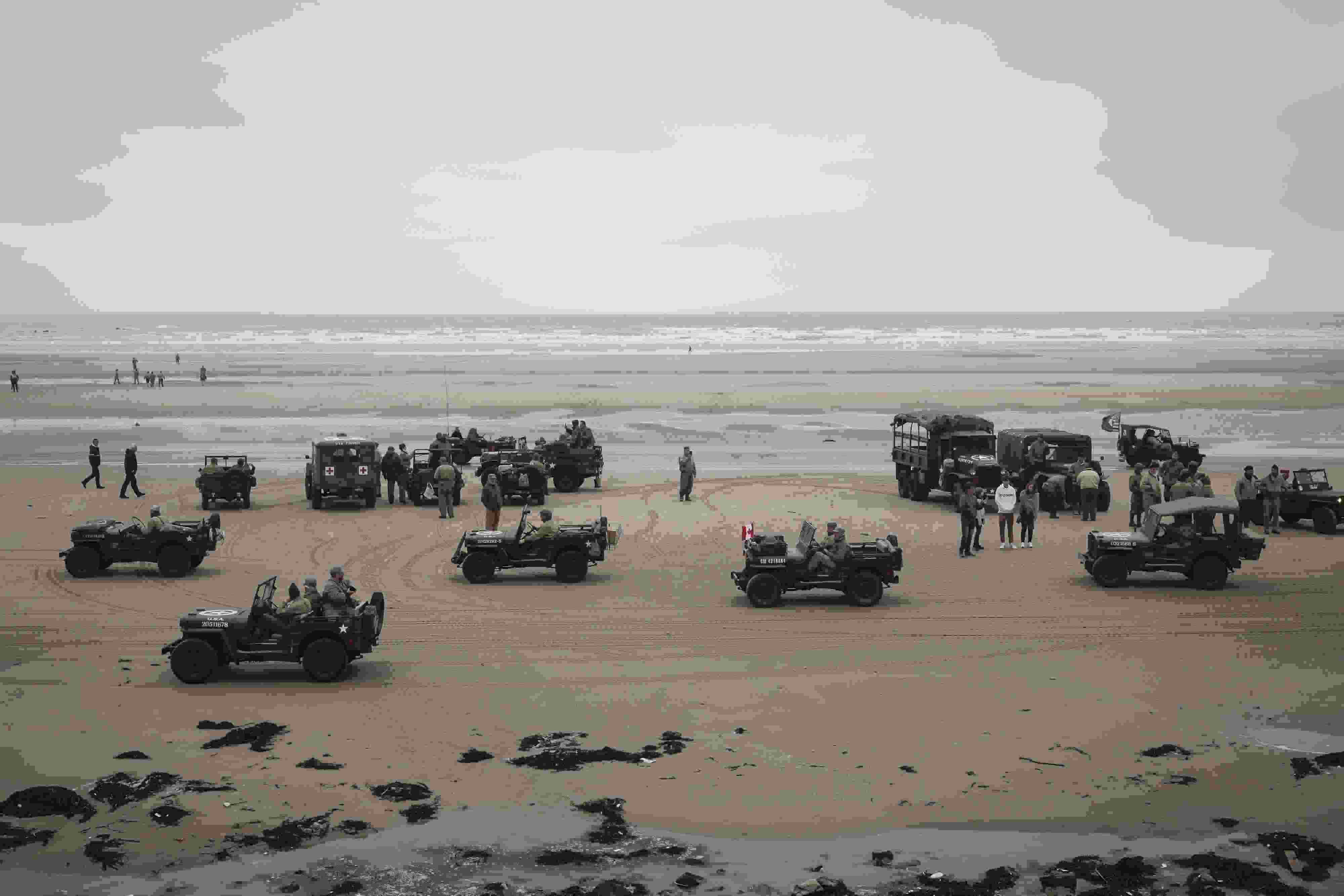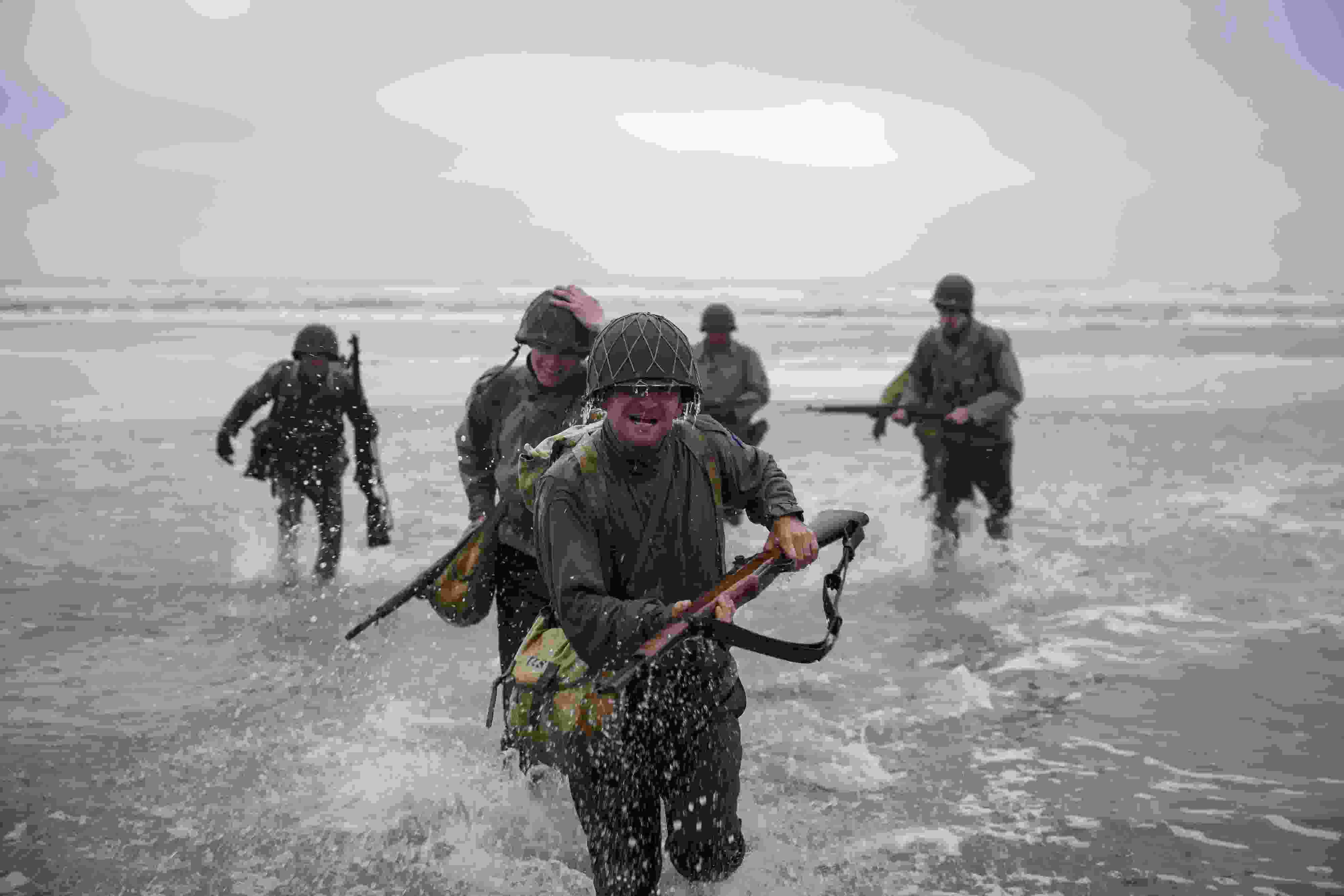 當?shù)貢r間2023年6月6日,法國奧馬哈海灘,人們重現(xiàn)戰(zhàn)爭場景紀念諾曼底登陸。1944年6月6日黎明時分,近16萬盟軍在諾曼底登陸。 視覺中國