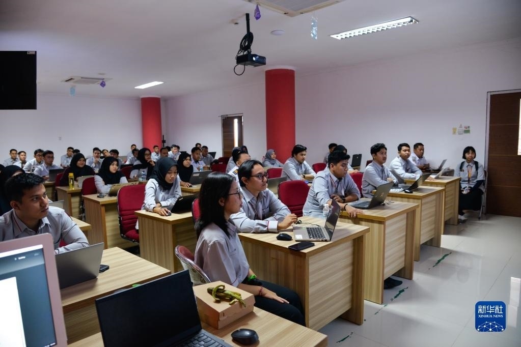 6月7日,在位于印度尼西亞茉莉芬市的印尼鐵路理工學(xué)院,學(xué)員在接受雅萬高鐵運行控制中心調(diào)度人員培訓(xùn)。