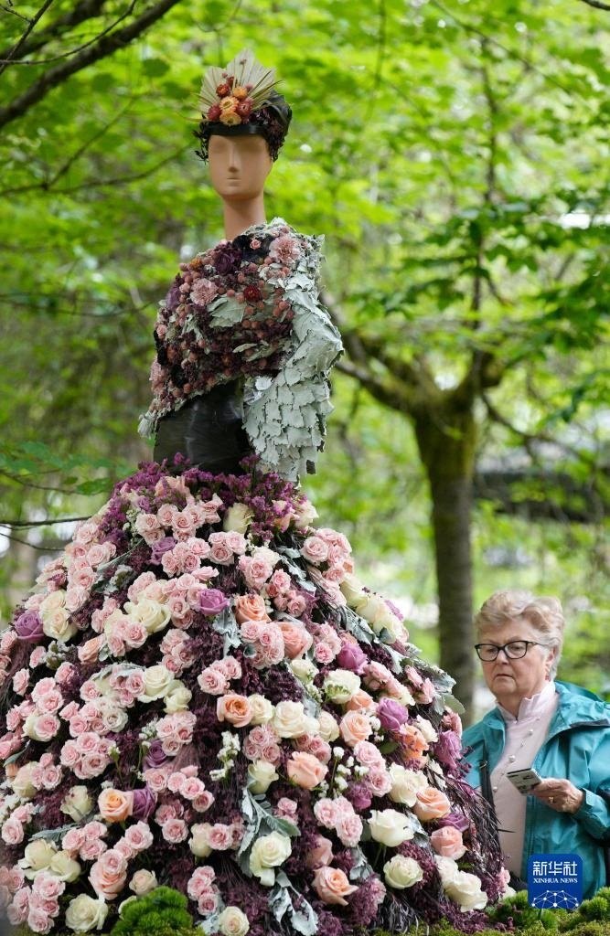 這是6月9日在加拿大溫哥華舉辦的“花卉城市之旅”花卉展上拍攝的花卉裝置藝術(shù)作品。新華社發(fā)(梁森攝)