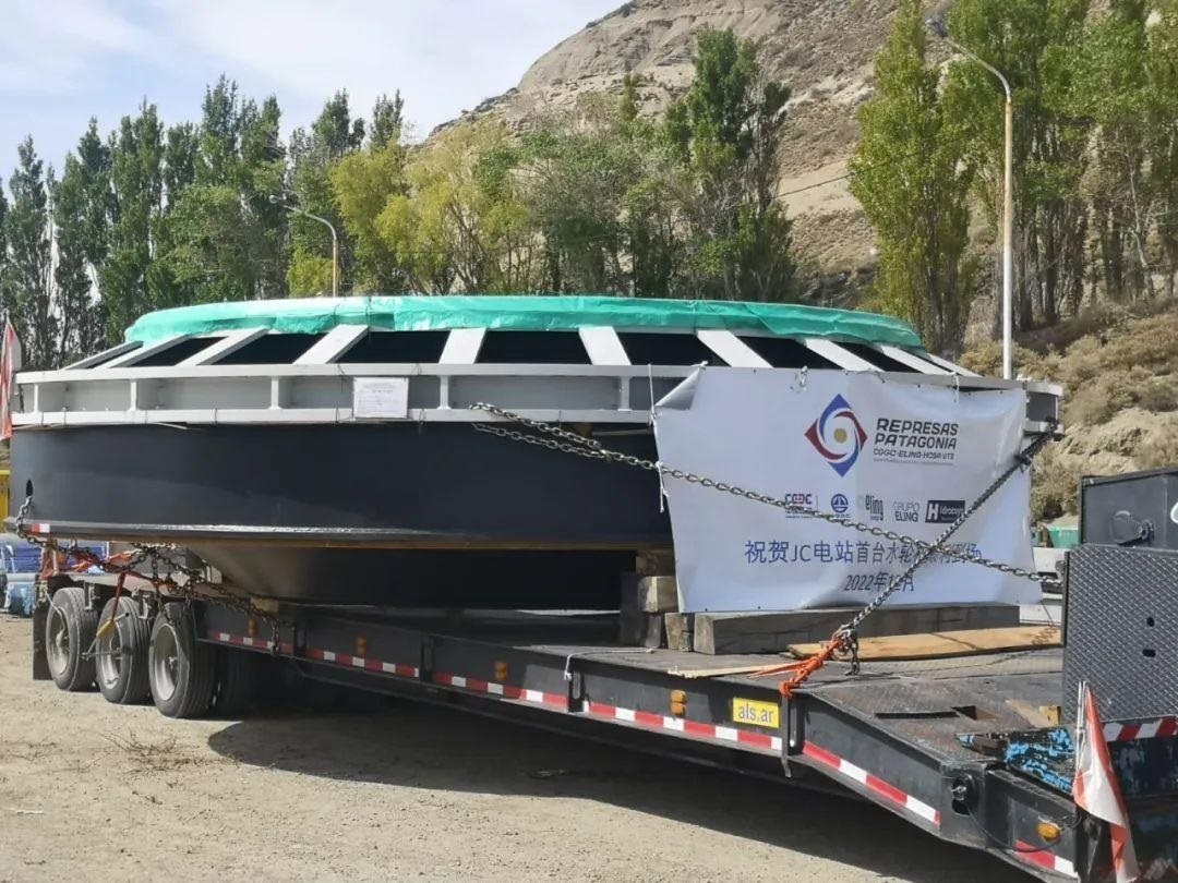 2022年12月7日,由中國企業(yè)聯(lián)合當?shù)仄髽I(yè)承建的阿根廷吉賽水電站項目JC電站首臺軸流轉(zhuǎn)槳式水輪機由中國運抵阿根廷(圖片來源:中國駐阿根廷使館微信公眾號)