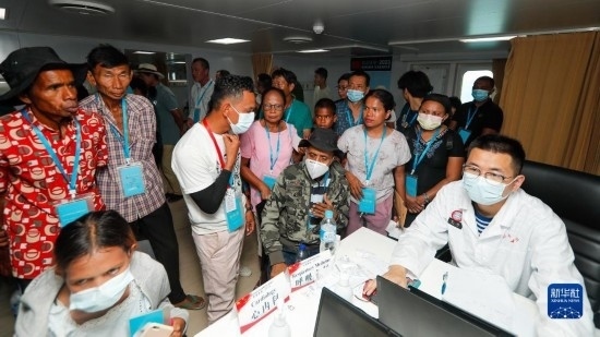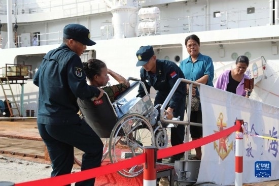 中國海軍“和平方舟”號醫(yī)院船訪問東帝汶并開展醫(yī)療服務(wù)期間,醫(yī)院船官兵為當?shù)匦袆硬槐愕幕颊叻?wù)(9月6日攝)。新華社發(fā)(桂江波 攝)