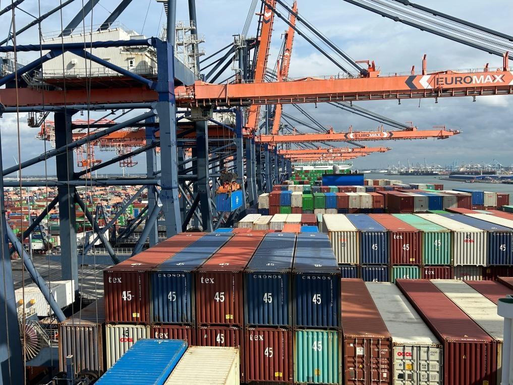9月20日,“中遠(yuǎn)海運(yùn)室女座”號(hào)集裝箱船??吭诤商m鹿特丹港作業(yè)。新華社發(fā)