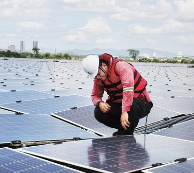 馬來(lái)西亞雪蘭莪州10兆瓦水面漂浮式光伏電站在自然湖上興建,是該國(guó)運(yùn)行的首個(gè)水面光伏項(xiàng)目。該項(xiàng)目由中國(guó)國(guó)家電投集團(tuán)上海能源科技發(fā)展有限公司總承包,于2020年8月實(shí)現(xiàn)全容量并網(wǎng)發(fā)電,目前運(yùn)營(yíng)良好,月發(fā)電量約為145萬(wàn)千瓦時(shí),促進(jìn)當(dāng)?shù)鼐G色電力發(fā)展。