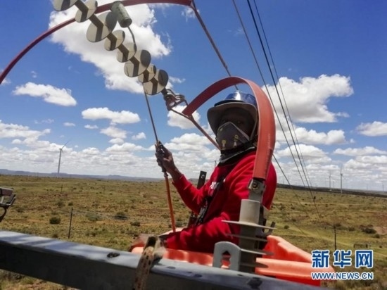 新華網(wǎng)約翰內(nèi)斯堡8月21日電(賈睿琪)在南非北開普省德阿鎮(zhèn)附近的山地上,一座座白色風(fēng)機(jī)昂然佇立。勁風(fēng)吹過(guò),風(fēng)機(jī)葉片徐徐轉(zhuǎn)動(dòng),這是中國(guó)國(guó)家能源集團(tuán)龍?jiān)措娏δ戏枪具\(yùn)營(yíng)的德阿風(fēng)電項(xiàng)目風(fēng)機(jī)。