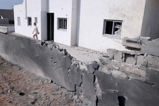這是10月11日在以色列阿什凱隆拍攝的遭加沙火箭彈襲擊的圍墻。 新華社發(fā)(伊蘭·阿薩亞格攝/基尼圖片社)