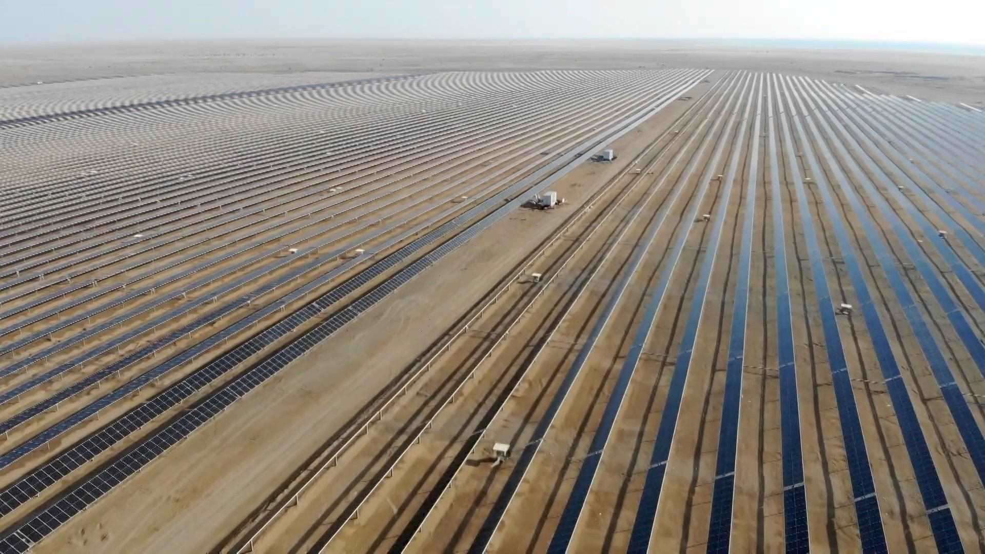 紅海之濱,中沙正攜手在沙漠里打造一座未來之城。紅海新城,是中沙在綠色低碳領域重點合作項目,未來這里的電力供應將100%來自清潔能源。在中國企業(yè)建設的其中一個光伏廠區(qū)內,4068排光伏板整齊排列,24小時不間斷為新城提供可再生能源。針對當地沙塵頻繁的天氣,中國企業(yè)還專門設計了自動清掃機器人。