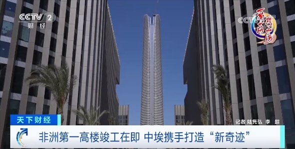 總臺記者 陸雋弘:這片已然拔地而起的現(xiàn)代化新城,就是在建中的埃及新行政首都中央商務(wù)區(qū)。其中最高大顯眼的這座大樓,便是高達385.8米的非洲第一高樓“標志塔”。中央商務(wù)區(qū)項目的全部20棟建筑均已完成主體結(jié)構(gòu)及外裝幕墻的施工,整個項目正處于竣工前的最后沖刺階段。