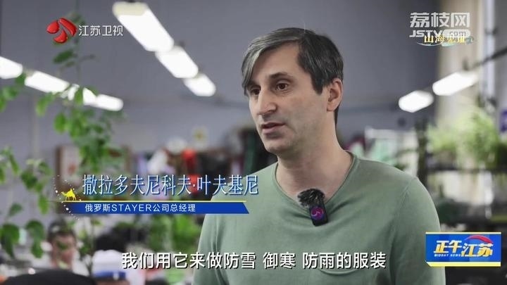 俄羅斯STAYER公司總經(jīng)理撒拉多夫尼科夫·葉夫基尼說(shuō):“這都是剛從中國(guó)運(yùn)過(guò)來(lái)的布料,它們具有防水性,透氣性,我們用它來(lái)做防雪、御寒、防雨的服裝。所有人都贊成中國(guó)的布料越來(lái)越好,近三年的計(jì)劃是加強(qiáng)與合作伙伴的聯(lián)系,擴(kuò)大布料的購(gòu)買(mǎi)量,期待有好的發(fā)展?!?/p>