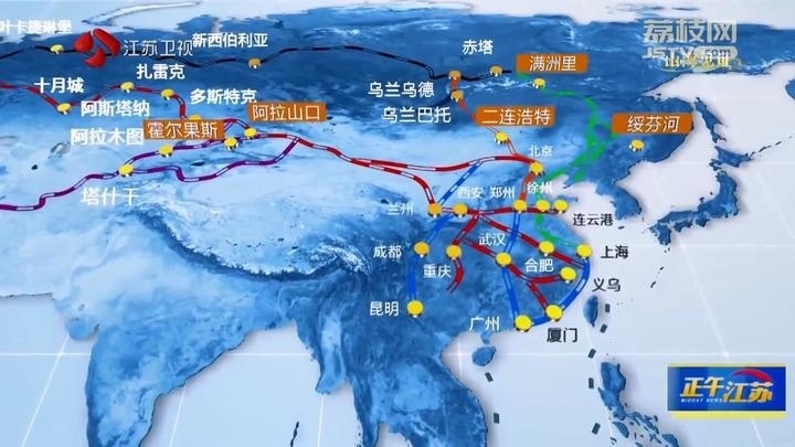 1992年,江蘇連云港開(kāi)通最早發(fā)往中亞的班列;2013年,蘇州、鄭州、重慶、成都首批開(kāi)通中亞班列;2016年,統(tǒng)一品牌:中歐班列。截至2023年9月底,中歐班列累計(jì)開(kāi)行超7.8萬(wàn)列,聯(lián)通中國(guó)境內(nèi)112個(gè)城市,通達(dá)歐洲25個(gè)國(guó)家的217個(gè)城市。