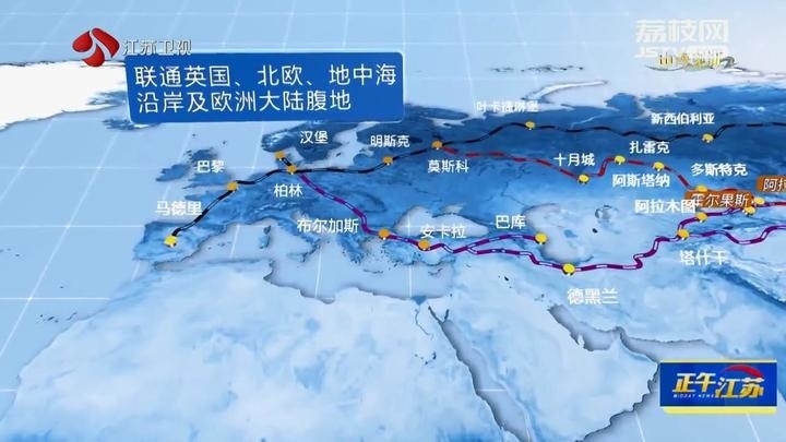 在西端,聯(lián)通英國(guó)、北歐、地中海沿岸及歐洲大陸腹地;