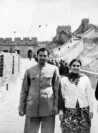 1972年, 穆沙希德(左)和姐姐一起參觀長城。