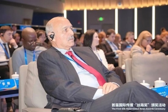 穆沙希德10月19日參加2023“一帶一路”媒體合作論壇并代表國際傳播“絲路獎(jiǎng)”獲獎(jiǎng)?wù)甙l(fā)言。