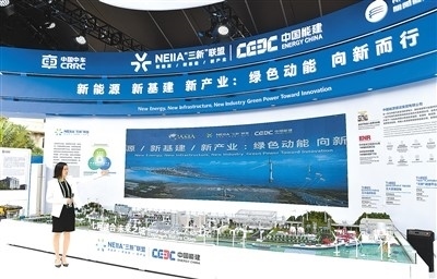 博鰲亞洲論壇2023年年會(huì)上,中國(guó)能建參展人員介紹“新能源 新基建 新產(chǎn)業(yè):綠色動(dòng)能 向新而行”展臺(tái)。新華社記者 楊冠宇攝