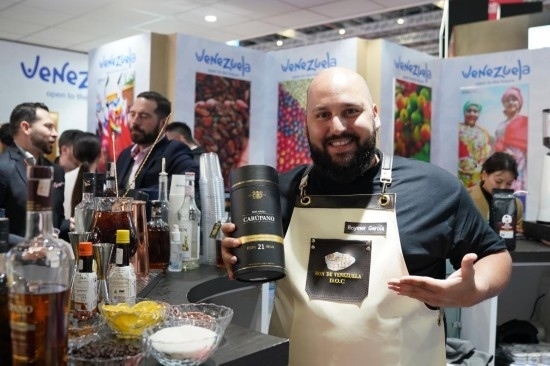 11月7日,展商在第六屆進博會國家展委內(nèi)瑞拉展臺展示朗姆酒。新華社記者 李夢嬌 攝