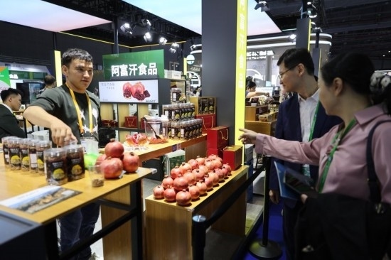 11月6日,在第六屆進(jìn)博會(huì)食品及農(nóng)產(chǎn)品展區(qū),阿富汗食品吸引參展人員。
