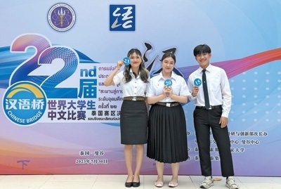 語言是了解一個國家最好的鑰匙。當(dāng)前,越來越多的外國人通過學(xué)習(xí)中文和參加“漢語橋”交流項(xiàng)目,了解到豐富多彩、立體全面的中國。圖為今年7月,部分參加第二十二屆“漢語橋”世界大學(xué)生中文比賽泰國賽區(qū)決賽的比賽選手在現(xiàn)場合影留念。