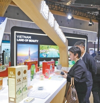 11月6日,參觀者在第六屆進(jìn)博會(huì)國家展越南展臺(tái)挑選商品。新華社記者 李夢(mèng)嬌攝