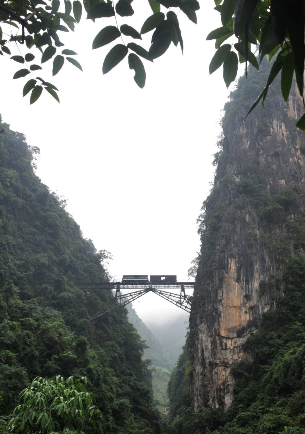 這是行駛在滇越鐵路云南省屏邊縣境內(nèi)的貨運(yùn)列車(2012年3月9日攝)。