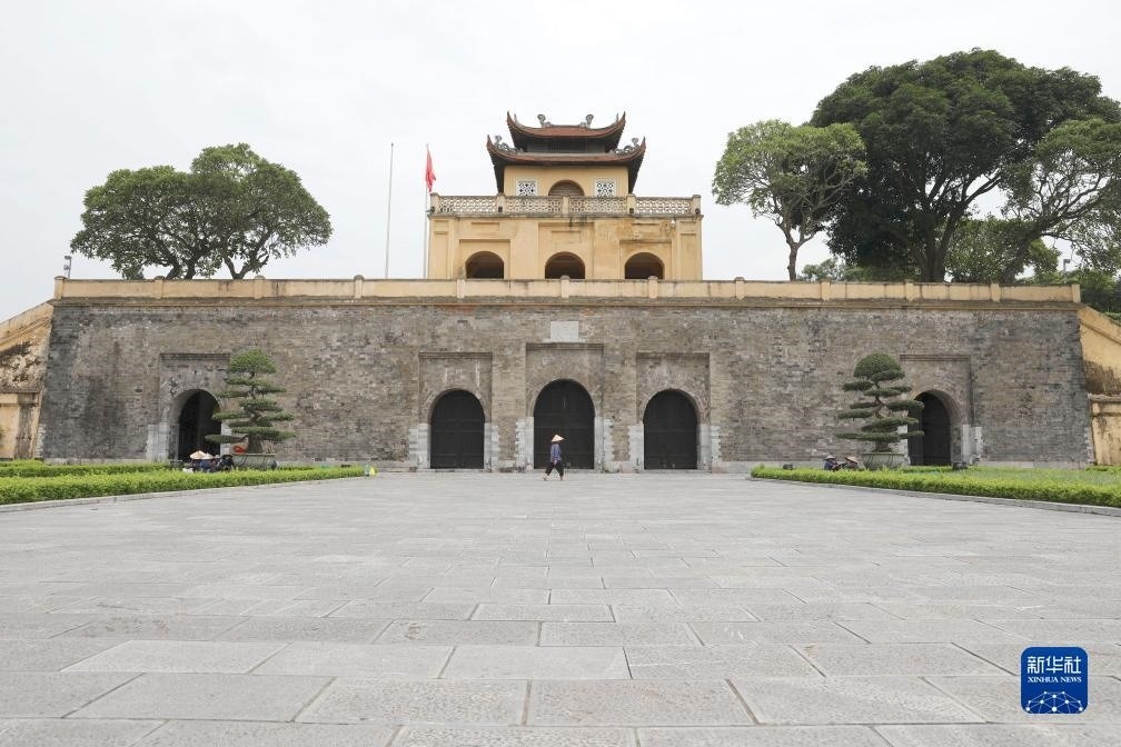 這是2019年8月23日在越南河內(nèi)拍攝的升龍皇城端門。