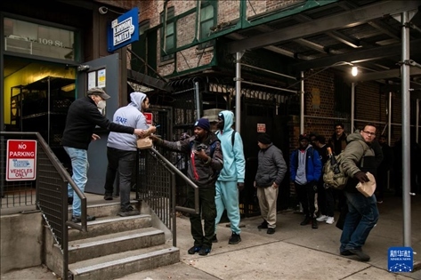 12月24日,在美國紐約,民眾在“紐約公共食品儲藏室”排隊領(lǐng)取免費食品。新華社發(fā)(郭克攝)
