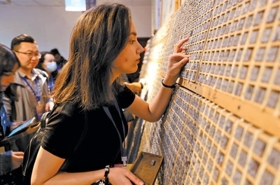 2023年10月,在山東省臨沂市沂南縣銅井鎮(zhèn)竹泉村,外國留學生體驗活字印刷,感受中國傳統(tǒng)文化魅力。王彥冰攝(新華社發(fā))