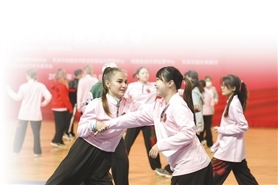 在2023年11月舉行的2023年在華留學生武術訓練營(天津外國語大學站)活動上,外國留學生學習中國傳統(tǒng)武術。劉東岳攝(影像中國)