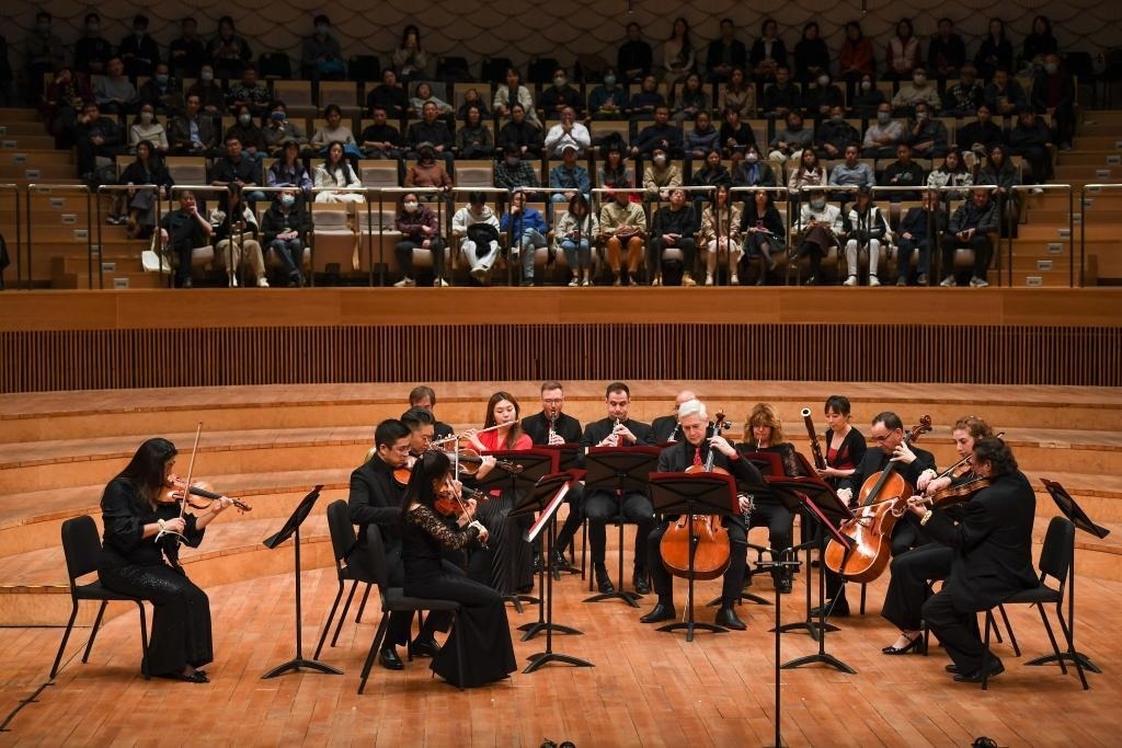 ?這是2023年11月16日拍攝的音樂會現(xiàn)場。當(dāng)日,“費(fèi)城之約”——費(fèi)城交響樂團(tuán)與蘇州交響樂團(tuán)室內(nèi)樂音樂會在江蘇蘇州舉行。新華社記者 李博 攝