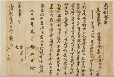 853年,圓珍入唐,先后在福州開元寺、天臺(tái)山國清寺、長安青龍寺等地修學(xué)。858年,圓珍攜大量經(jīng)卷、法器等回到日本,被尊為三井寺第一代住持,并成為日本天臺(tái)宗寺門派創(chuàng)始人。在唐求法期間,圓珍與各界人士結(jié)下深厚友誼。圓珍的親身經(jīng)歷以及他和唐朝人士的往來信件等,成為中日文化交流的歷史見證。