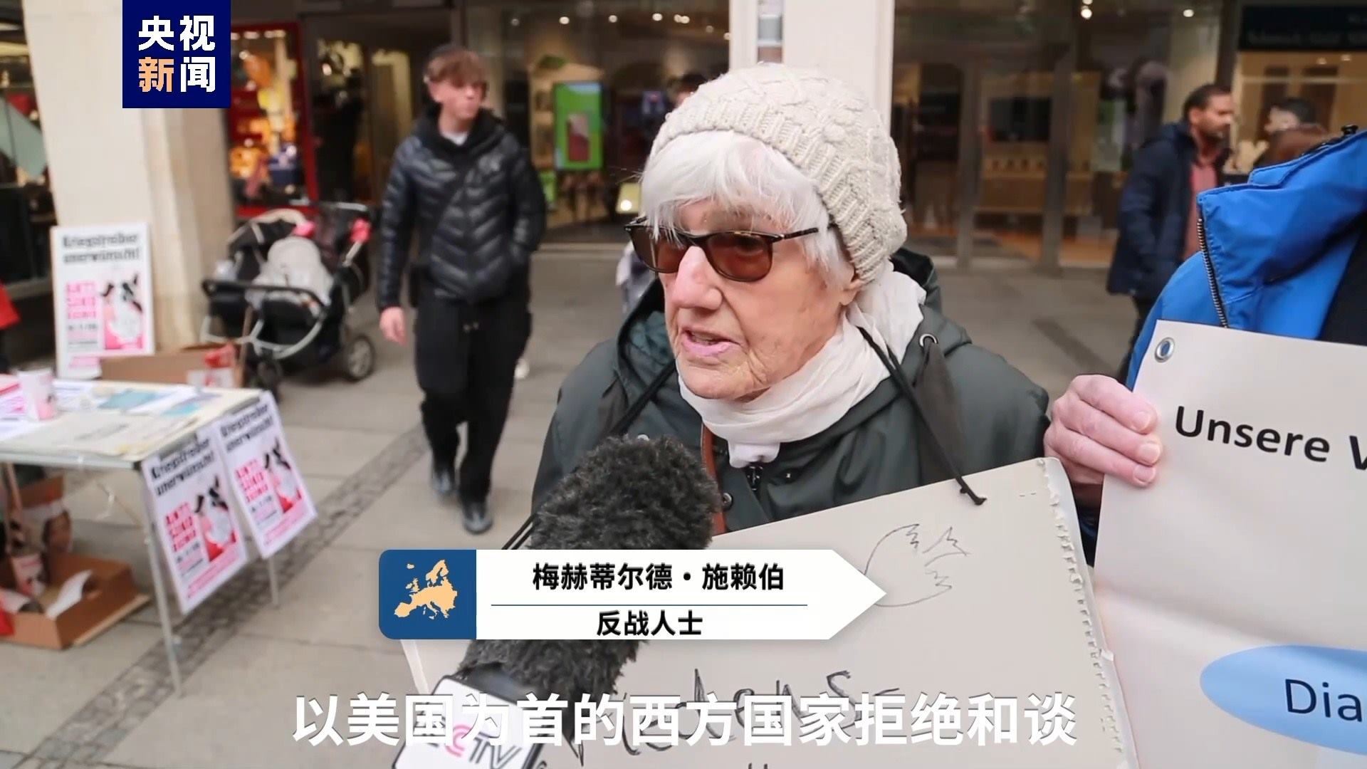 反戰(zhàn)人士 梅赫蒂爾德·施賴伯:以美國(guó)為首的西方國(guó)家拒絕和談。德國(guó)國(guó)防部長(zhǎng)說,我們必須做好戰(zhàn)爭(zhēng)準(zhǔn)備,運(yùn)送武器并且提高武器生產(chǎn)能力。這非??膳?。
