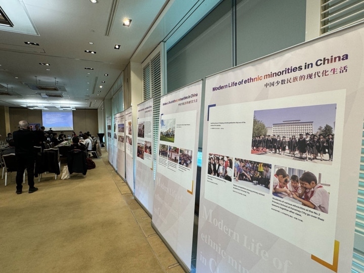?3月14日,由中國人權研究會主辦的“現(xiàn)代化發(fā)展中的少數民族受教育權——以中國西藏和新疆為例”主題邊會在瑞士日內瓦舉行。圖為會議現(xiàn)場舉辦的“中國少數民族的現(xiàn)代化生活”圖片展。新華社記者石松攝