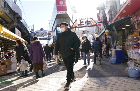 2021年12月28日,人們?cè)谌毡緰|京阿美橫町購買促銷商品。新華社發(fā)(克里斯托弗·朱攝)