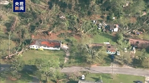 當(dāng)?shù)貢r(shí)間4月3日,美國(guó)佐治亞州羅克代爾縣遭遇龍卷風(fēng)襲擊。航拍畫(huà)面顯示,當(dāng)?shù)氐姆课莺蜆?shù)木遭到嚴(yán)重破壞。