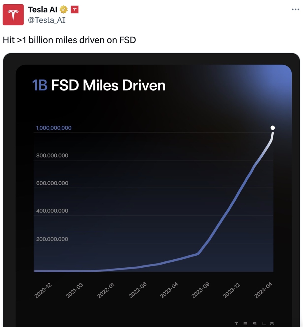 特斯拉還宣布,其FSD的行駛里程已經(jīng)超過(guò)了10億英里。