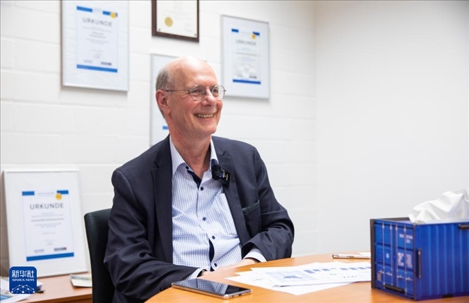 ?3月27日,德國(guó)杜伊斯堡-埃森大學(xué)交通與物流系主任貝恩德·諾合在杜伊斯堡接受新華社專訪。新華社記者 張帆 攝