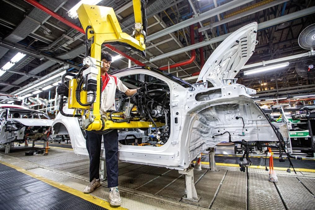 ?1月12日,工人在位于泰國羅勇的長城新能源汽車制造基地生產車間內工作。(圖/新華社)