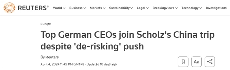 路透社分析稱,這份高管名單,凸顯了中國(guó)作為德國(guó)最大貿(mào)易伙伴的“重要份量”。