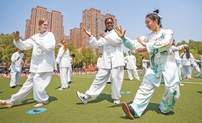 馬斯卡廷中學學生在中國老師指導下學習太極拳。