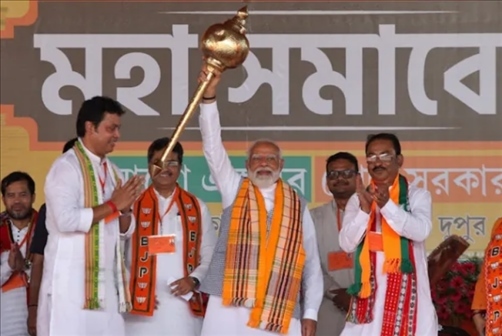 4月17日,印度特里普拉邦,莫迪在競(jìng)選集會(huì)上擺pose 圖源:路透社