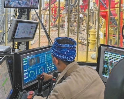 通過(guò)參與艾伯特湖區(qū)油田建設(shè),東方宏華還研發(fā)出“一鍵聯(lián)動(dòng)”舉升式排管系統(tǒng),以舉升移運(yùn)、多系統(tǒng)協(xié)同、離線作業(yè)、智能感知、一鍵集控五大技術(shù)為核心,實(shí)現(xiàn)在地面、臺(tái)面和高空三大區(qū)域的自動(dòng)化作業(yè)?!坝辛宋覀冏灾餮邪l(fā)的智能系統(tǒng)加持,操作人員只需點(diǎn)擊屏幕,就可以完成接立柱和鉆井等操作。”東方宏華所屬宏華電氣副總經(jīng)理汪虹宇介紹。