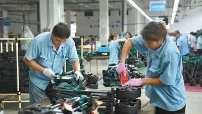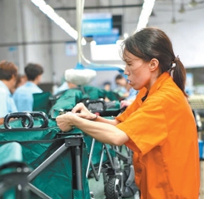 60多公里外的駐馬店市平輿縣產(chǎn)業(yè)集聚區(qū)里,戶外休閑用品加工企業(yè)內(nèi)一派繁忙景象。河南泰普森休閑用品有限公司車(chē)間正緊鑼密鼓地生產(chǎn)折疊桌椅、帳篷、戶外小拉車(chē)等產(chǎn)品?!斑@些是歐洲的訂單?!惫究偨?jīng)理王小奇指著眼前正在包裝的產(chǎn)品說(shuō),“今年市場(chǎng)需求旺盛,訂單已經(jīng)排到年底了。我們加足馬力生產(chǎn),一條流水線的日產(chǎn)量已超過(guò)1000套?!?/P>