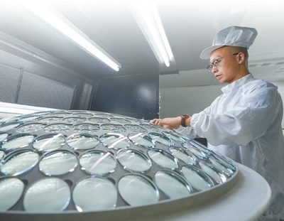在江蘇丹陽(yáng)市一家光學(xué)眼鏡有限公司,工作人員在鍍膜車(chē)間內(nèi)檢查、填裝鏡片。新華社記者 李 博攝
