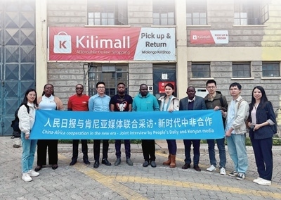 7月25日,在肯尼亞馬查科斯郡,中肯媒體記者走進(jìn)電商平臺(tái)Kilimall非洲海外倉采訪倉儲(chǔ)物流及運(yùn)營情況。本報(bào)記者 高 石攝