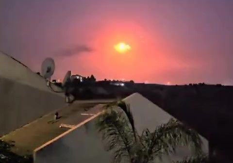 這張社交媒體上的視頻截圖顯示,8月25日,以色列北部防空系統(tǒng)啟動攔截。新華社發(fā)