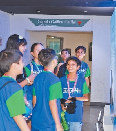 當?shù)貙W生在展板前展開討論交流。本報記者 宋亦然攝