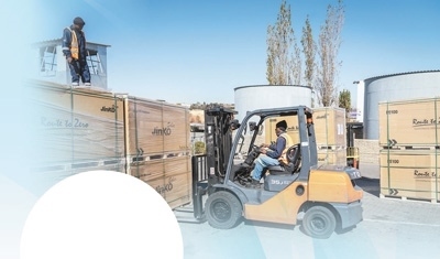 在中建材南非海外倉,當(dāng)?shù)貑T工正在裝卸貨物。本報(bào)非洲中心分社 希拉茲·莫林?jǐn)z